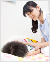 ここは、病児・病後児保育施設で、病気やケガで通常の幼稚園や保育園には通えない、就学前までのお子様が来ます。1日定員が5名ですが、病気やお子様の年齢によって、受け入れ人数が変わります。仕事は朝8時半から午後5時半まで。前準備があるので、いつも8時すぎには出勤、17時半に最後のお母様のお迎えのあと、片付けや消毒、明日の準備をしますので、平均して18時半に仕事が終わります。まず、朝はお母様からの受け入れで、病状確認をします。どんな生活をしているのか、病気の発症の経緯、処方された薬についても伺います。そして、最初にお子様の検温をします。その後は、おやつ。アレルギーのお子様もいるので、一人ひとりに合わせたおやつを用意します。その後は、お子様によっては早い時間に寝かせたり、寝ない子とは一緒に遊んだりします。そして昼ご飯。そのあとはお昼寝ですが、すべて一人ひとりに合わせて。午睡のあとは、またおやつ。そして、夕方お迎えに来たときに合わせて、お母様に申し送りをします。検温をはじめ、今日一日、どのような生活をしたかや、1日1回、必ず診察がありますので、その結果もお伝えします。これが一日の仕事の流れです。最初は、薬や睡眠時間をお母様方から聞き忘れるなど、失敗ばかりでした。普通の保育士さんも大変だと思いますが、病児保育は薬をはじめ病気についての臨床系の知識も必要ですし、病気のお子様を抱えながら仕事をしていかなくてはならないお母様方のメンタルケアも必要となります。大変ですが、やりがいはありますね。
