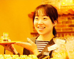 念願だったケーキの販売をしています。このお店は現場実習でお世話になり、アルバイトを経て就職しました。もともとスイーツが大好きだったので、いろいろなお店に行きましたが、ここは味はもちろん働いている人の雰囲気が他とは違ったんです。初めて買いに行ったとき、ショーケースに並んだケーキを見て迷っていたら優しく声をかけてくれたり、二度目に行ったら私の名前や好みを覚えていてくれたり、とにかくサービスが温かいんです。今、私も店頭でお客様に接するようになり、あの時の自分の気持ちをお客様に届けられるようがんばっています。お客様をお名前でお呼びして、笑顔が戻ってきた時は「よし」と前向きな気持ちになりますね。今はお客様と触れ合う接客の仕事にやりがいを感じていますが、お菓子作りを一からみっちり勉強した学生時代を思い出すと、お菓子を作りたい気持ちがムクムク。いつかは、自分で作って販売できたら理想ですね。