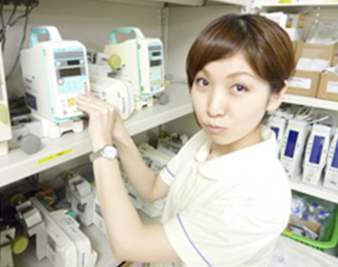医療機器の保守点検のほか、人工透析や人工心肺装置の操作を行うのが仕事です。同じ医療系でも、看護師の仕事とは全く違います。特に患者さんと関わる機会は人工透析のときくらいで、看護師のときに比べて圧倒的に少ないです。心臓手術では、少なくとも二人の技士が手術に立ち会い、人工心肺装置を操作します。モニターに出てくる心電図の波形はもちろん、執刀している医師が今何をしているのか、次に何をするのかを総合的に判断して、その患者さんにとって一番いい状態を考えて操作するのですが、めちゃくちゃ難しいです。1日で2,3件の手術に立ち会うこともありますし、1件の手術時間が10時間を超えることもあります。日常業務に加えて勉強もしますし、忙しい日々ですが、やりたいことができているという充実感があります。チームワークが大事な職場で、この病院は臨床工学技士が7人と他の病院に比べて少ないですが、しっかり連携ができています。わからないことがあっても、聞いたら何でも教えてくれる先輩たちは、とても頼りになります。人工心肺を使いこなす人を「パフュージョニスト」というのですが、一人前のパフュージョニストになることが私の目標です。