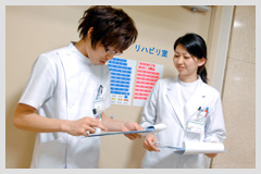 この病院には、小学生から高齢の方まで様々な患者さまが来院されるのですが、脳血管疾患等で救急入院される方が多いのも特徴です。いわゆる「急性期病院」といわれる施設なのですが、患者さまは短期間で回復期リハビリ病院に移られるので、限られた時間の中で回復できるようにケアするのがベストです。