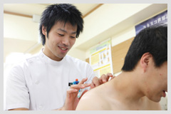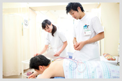 専門学校では、はりやきゅうについて基礎からしっかり学ぶことができたし、鍼灸の授業以外にヘルパーの実習なども受けることができ、それが今の仕事にもすごく役立っています。鍼灸を受ける患者さんにはいろんな方がいますし、高齢者の方もいらっしゃいます。車いすの動かし方や移乗の仕方、歩行の介助など、学校で学んでおいたおかげで、現場でもスムーズに対応することができました。