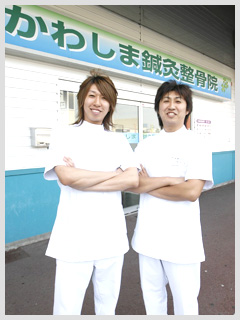 私は専門学校を卒業後、病院や整形外科、鍼灸整骨院に勤務して腕を磨き、その後、柔道整復師の兄と2人で「かわしま鍼灸整骨院」を開業しました。当初は患者さんがあまり来ず不安な時期もありましが、兄弟2人だからこそ、お互いの長所と短所を補いあいながら前向きに乗り切ることができたと思います。今では毎日たくさんの患者さんに来院していただけるようになり、スタッフも増員しました。一生懸命頑張れば必ず結果はついてくる。それがこの仕事の一番の魅力だと思いますね。