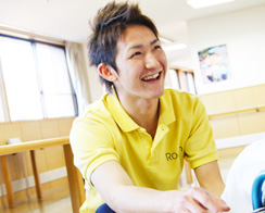この仕事をしていてやりがいを感じるのは、施設に入居しているお年寄りとの距離がだんだん近くなっていくのを実感した時。お互い他人同士だけど、日々関わっていくうちに、だんだん打ち解けてくるんです。心を開いてもらえるように、入居者のケースファイルを見て「若い頃にバスケをやっていた」とか「パチンコが好き」といった情報を調べて、話すきっかけを作ったりすることもあります。そうした努力をすることで、半年ぐらいたった頃に、一緒に生活をしている存在として認めていただいているんだなってわかると、うれしいですね。それは家族とも友達とも違う「愛情」なのだと思います。